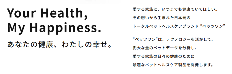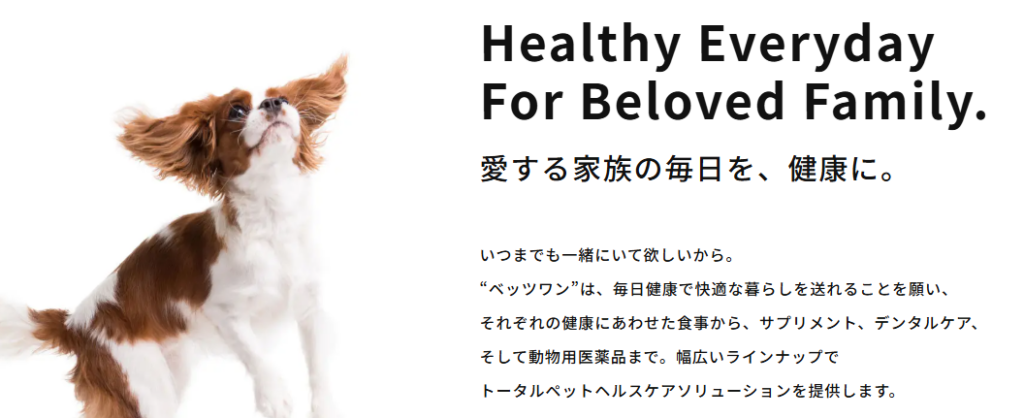 ベッツワンは、日本発のペットヘルスケアブランドで、療法食やサプリを中心に犬猫の健康をサポートする製品ラインです。