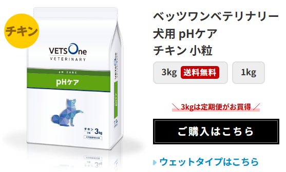 | ベッツワンベテリナリー 犬用 pHケア チキン 小粒 | ベッツワン | 療法食(犬) | 小粒 | 1kg / 3kg | ジャスミンライス・鶏肉 | タイ | 下部尿路疾患配慮 | 約382kcal/100g | 小粒 | ドライ |
