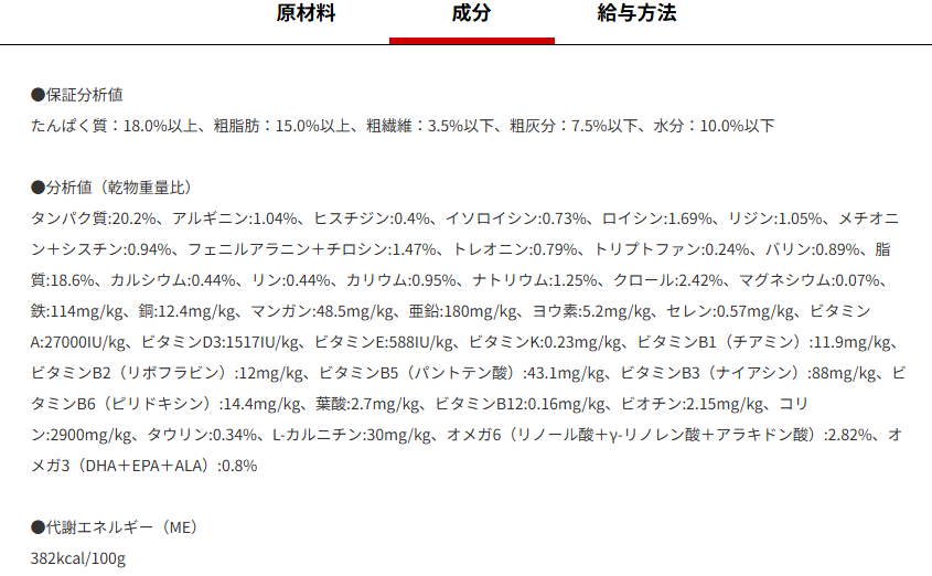 - 原材料・成分は目的特化型で合う犬と合わない犬が明確