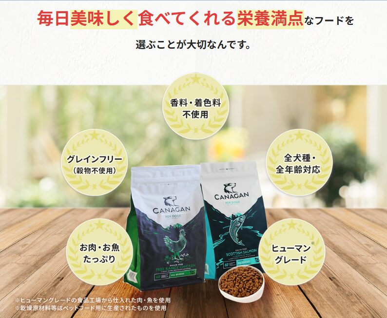 - カナガンは幅広い犬種・年齢に対応しており安心して与えられる