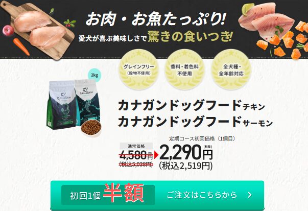 カナガンは初回限定の半額キャンペーンを実施しており、試しやすさが魅力です。