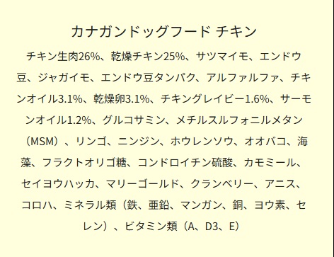A:カナガンは小型犬から大型犬まで幅広く対応可能です。チキン主体で消化しやすいため、食が細い犬や運動量の多い犬にも向いています。体質に合うかは個別に確認が必要です。