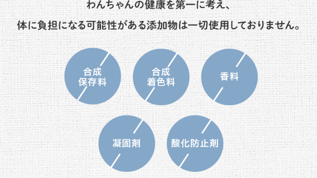 A:ミシュワンはすべて国内製造で、香料・着色料・保存料を使用せず、人間が食べられるグレードの原材料を使用しています。安心して与えられる内容で、安全性に配慮したドッグフードです。