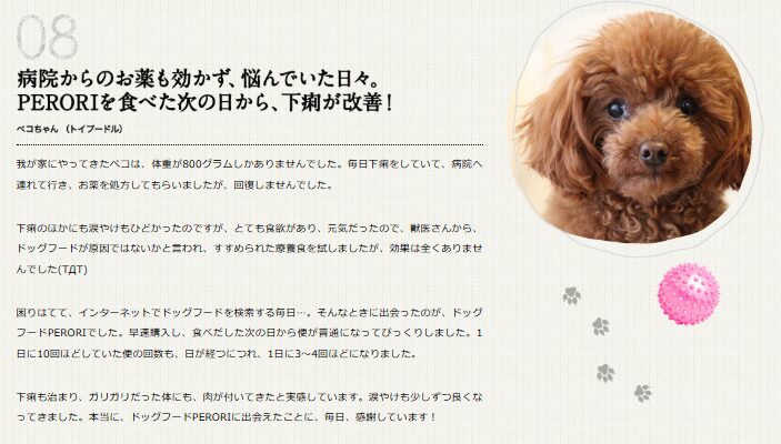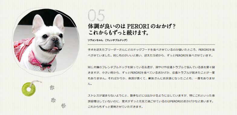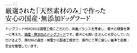 - PERORIは即効性より継続性を重視するドックフード