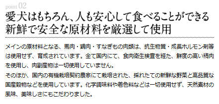人工香料や保存料を使用せず、タンパク源が明確な点が安心感に。