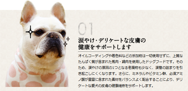 涙やけがよくなってきていること、私が食べても平気そうと思えるぐらいの、触った感じやにおいで、とても安心してあげられます。