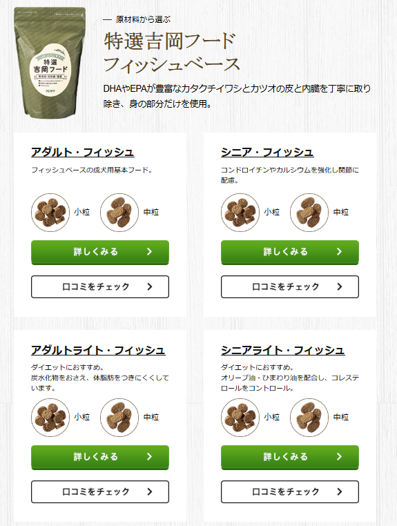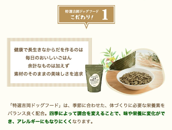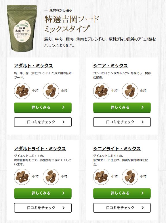 - 特選吉岡ドッグフードは子犬からシニア犬まで幅広く対応している