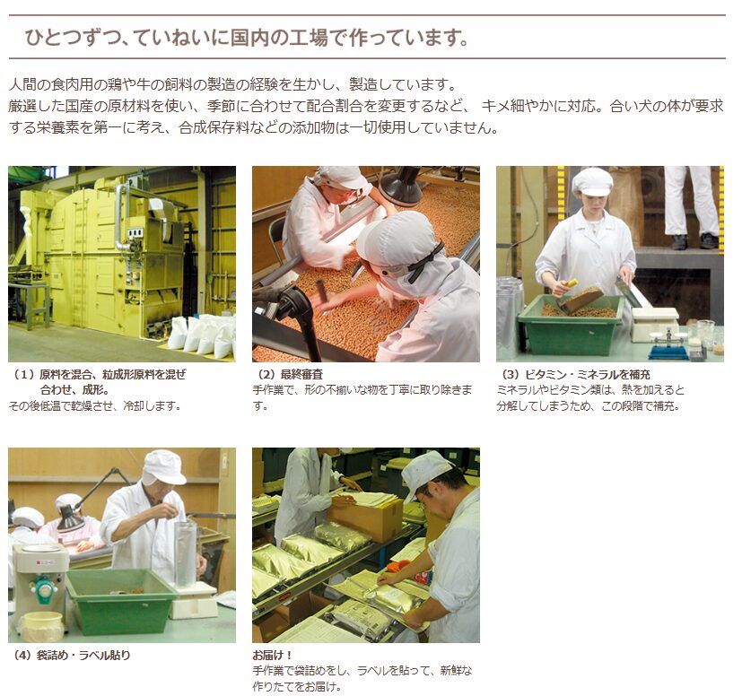国産無添加という基本方針に加え、粒サイズの改良など利用者の声を取り入れた工夫が重ねられている。