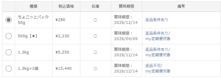 - 内容量バリエーションは?少量パックはある?