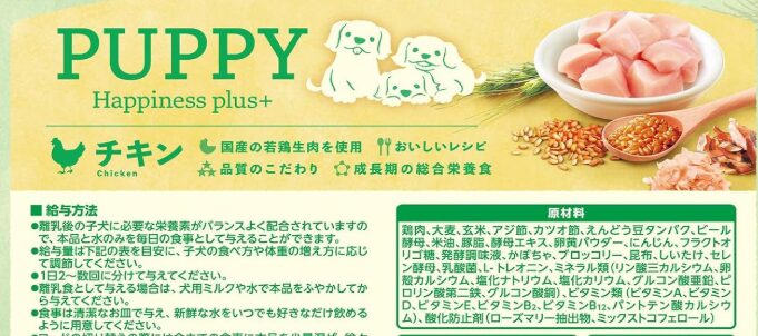 | パピー(Happiness plus+) ドライ | YumYumYum! | パピー | 50g 800g 800g×2 800g×4 800g×6 | 鶏肉 | 日本 | 成長期設計/和風だしベース/小粒設計 | 約365kcal | 小粒(標準) |