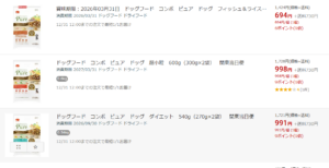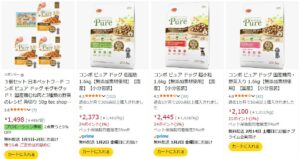 Amazonでもコンボピュアのドッグフードが複数ラインナップで販売されています。