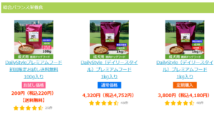 Yahoo!ショッピングでも「デイリースタイル」の商品が20件以上出品中で、「皮膚・健康サポート用」「お試し100g」など種類が異なるアイテムがあります。