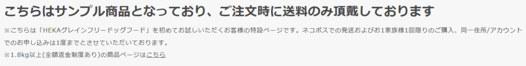 引用元:HEKA 公式HP「HEKAグレインフリードッグフード お試しセット(100g ×3種)」商品ページ