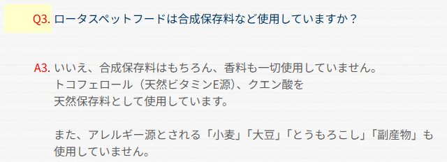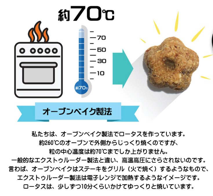 - ロータスは人工添加物や副産物を使っていないため、安全性の高い総合栄養食である