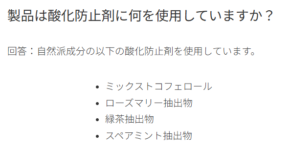 酸化防止剤にBHA、BHTを使用していないのがよかったです。