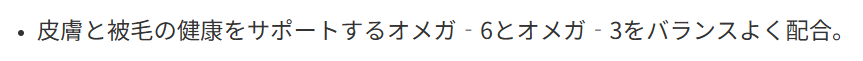 - オメガ脂肪酸の配合で毛艶や皮膚の健康をサポート
