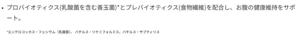 乳酸菌や繊維系もあり便の状態の改善にも期待できそうです