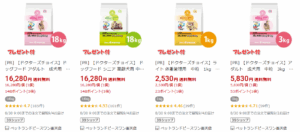 楽天市場内の複数のショップが取り扱っており、フードやサプリメント、おやつなどのラインナップが揃っていますよ。