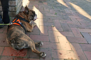 ブリンドルのフレンチブルドッグは、少し頑固な面があり、自由に動きたがる傾向があります!
