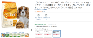 出品はランダムで数が多くないため、「gather」「ギャザー」「ドッグフード」など複数キーワードでこまめに検索することがポイント。