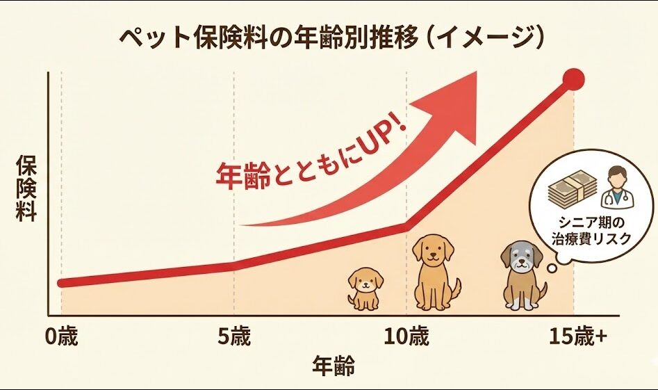 例えば、0歳時は月3,500円と安くても、5歳で月6,000円、病気リスクが高まる10歳を超えると月15,000円以上に跳ね上がるケースも珍しくありません。