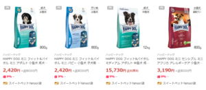 ハッピードッグは Yahoo!ショッピングでも幅広く販売されています。