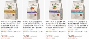Amazonでは、ニュートロ「シュプレモ」の取り扱いがありますが、取り扱い店舗や在庫状況は変動するため購入前に商品の詳細ページで確認すしましょう。