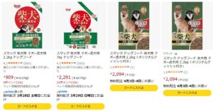 スマック柴犬用は特売やポイント還元の影響を受けやすく、2.2kgで約900円〜1,200円前後まで変動します。