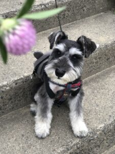 ブラック&シルバーのミニチュアシュナウザーは、とても知的で落ち着きのある性格です!