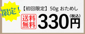 公式サイトでは初回限定で50g(税込330円)もしくは100g(税込540円)のお試しサイズが用意されていて、送料無料です。