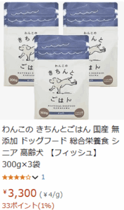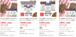 楽天市場では、CHIEN‑CHIENの公式ショップが「わんこのきちんとごはん フィッシュ/ポーク」の300gパックやお試し50gを販売中。